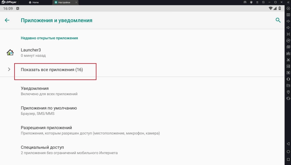 Шаг 1. Откройте по пути: Приложения системы на рабочем столе эмулятора - Настройки — Приложения