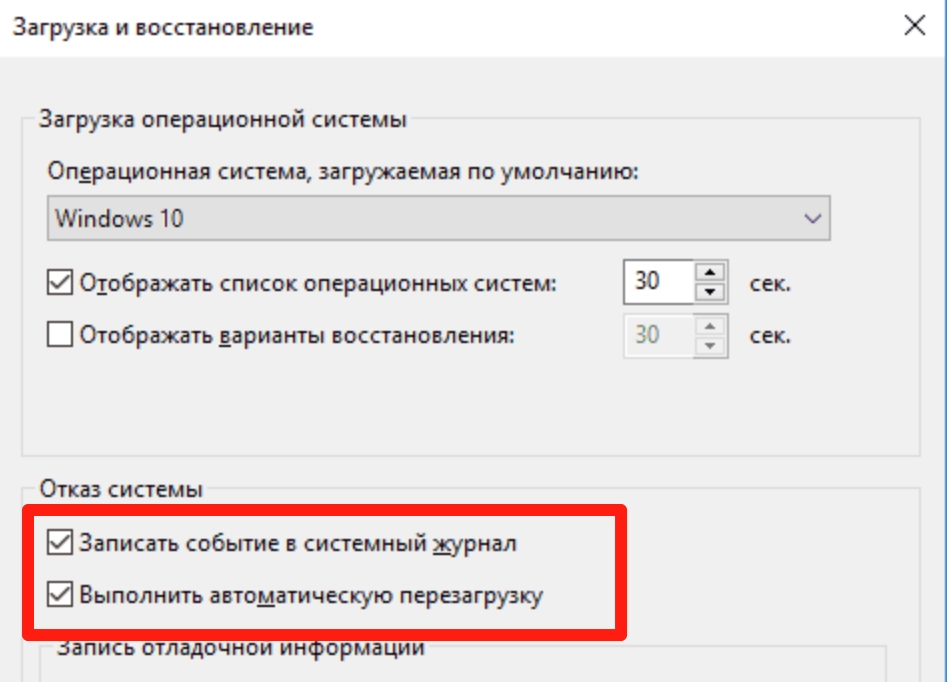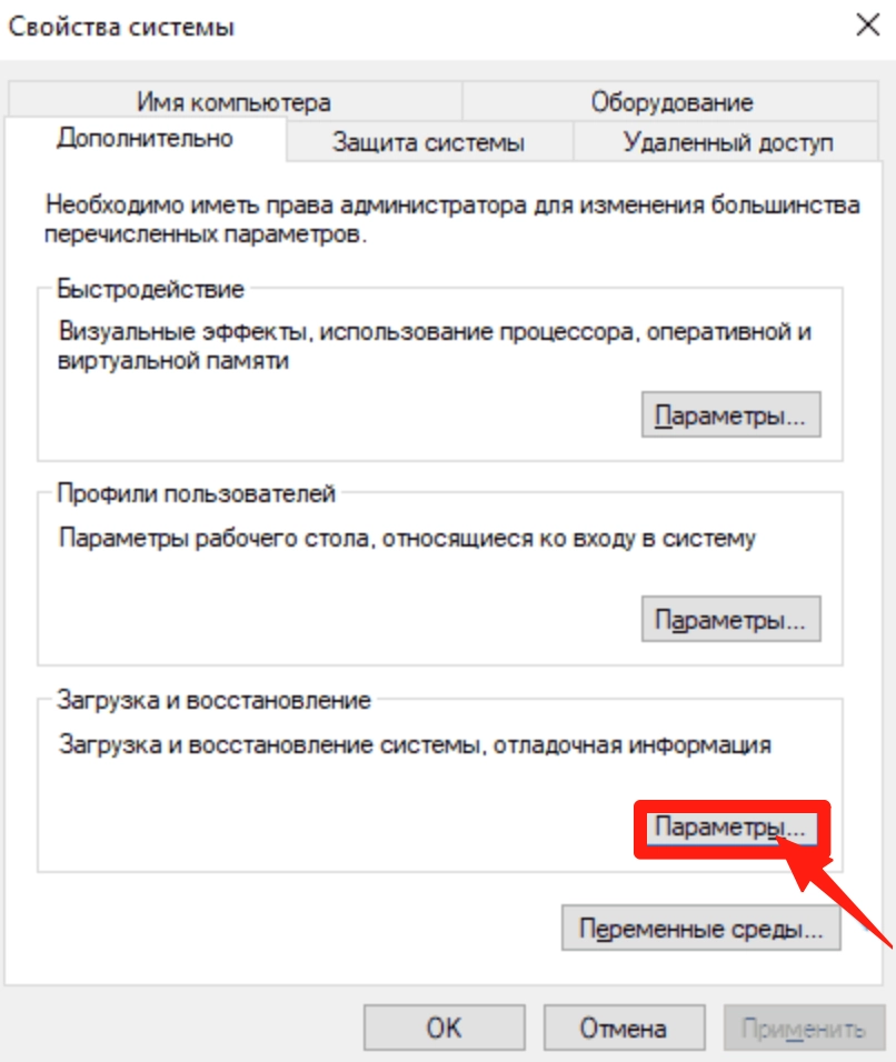 3. В разделе «Загрузка и восстановление» нажмите «Параметры».