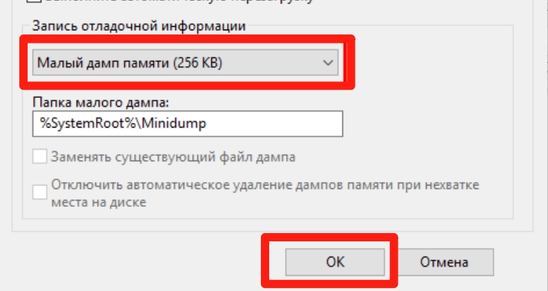 После настройки Windows будет автоматически создавать минидамп-файлы при системных сбоях.