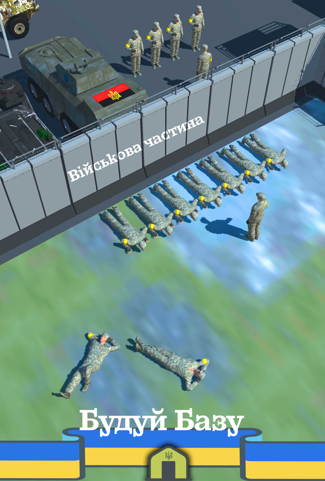 Собирайте драгоценные монеты во время ожесточенных экшен боев, построй военный форт для украинских борцов ВСУ. Постройте пять военных объектов на территории форта, докажи всем, что вы настоящий армейский командир! Война- лучший тренер для солдат!