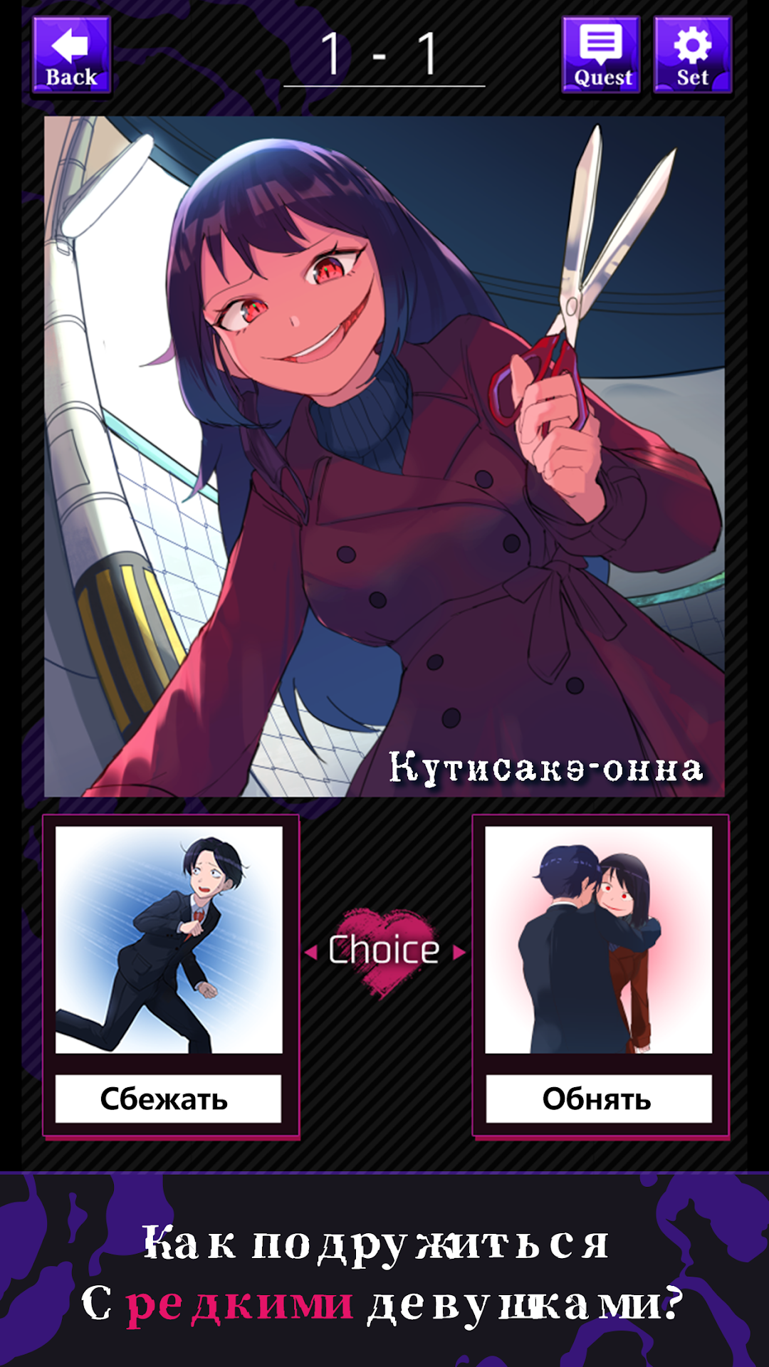 "Подружись с редкими девушками“ - это игра с сюжетными вопросами на 2 выбора! Сделайте редких девушке (ёкай, странность, призрак) счастливее. Если выберешь неверный ответ, то будет несчастливый конец. Так что, будь внимательнее!Можешь пройти всю игру абсолютно бесплатно!